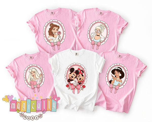 Belle Aurora Ariel Tiana Jasmine Cinderella Mickey and Minnie